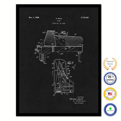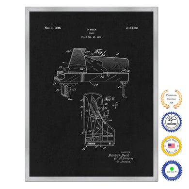 1938 Piano Old Patent Art Print on Canvas Custom Framed Vintage Home Decor Wall Decoration Great for Gifts