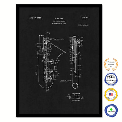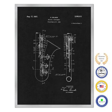 1935 Saxophone Musical Instrument Old Patent Art Print on Canvas Custom Framed Vintage Home Decor Wall Decoration Great for Gifts