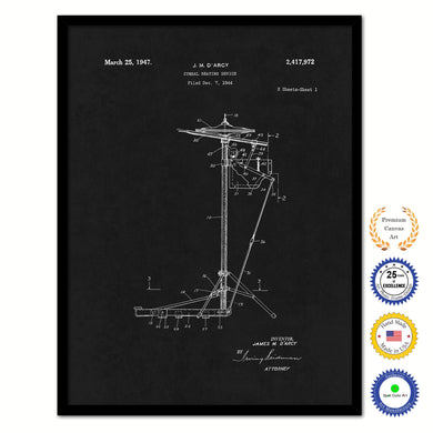 1947 Cymbal Beating Device Old Patent Art Print on Canvas Custom Framed Vintage Home Decor Wall Decoration Great for Gifts