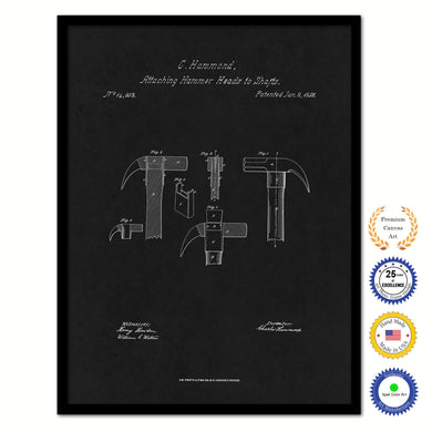 1868 Hammer Old Patent Art Print on Canvas Custom Framed Vintage Home Decor Wall Decoration Great for Gifts