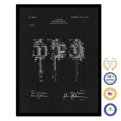 1904 Electric Tattooing Device Old Patent Art Print on Canvas Custom Framed Vintage Home Decor Wall Decoration Great for Gifts
