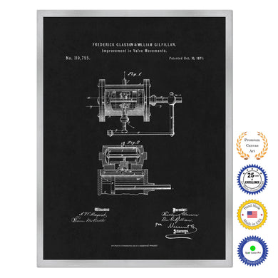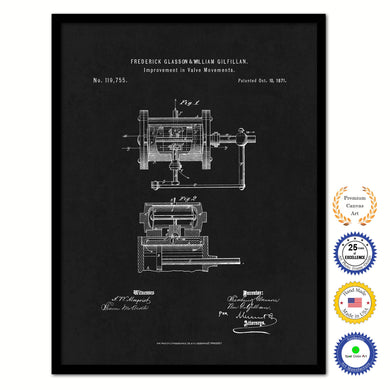 1871 Improvement in Valve Movements Old Patent Art Print on Canvas Custom Framed Vintage Home Decor Wall Decoration Great for Gifts