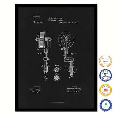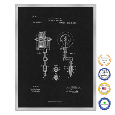 1891 Tattooing Machine Old Patent Art Print on Canvas Custom Framed Vintage Home Decor Wall Decoration Great for Gifts