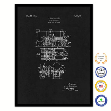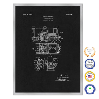 1924 Steam Locomotive Old Patent Art Print on Canvas Custom Framed Vintage Home Decor Wall Decoration Great for Gifts