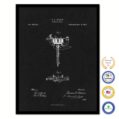 1877 Stencil Pen Old Patent Art Print on Canvas Custom Framed Vintage Home Decor Wall Decoration Great for Gifts