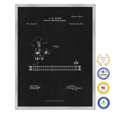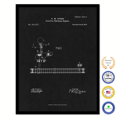 1875 Electric Railway Signal Old Patent Art Print on Canvas Custom Framed Vintage Home Decor Wall Decoration Great for Gifts