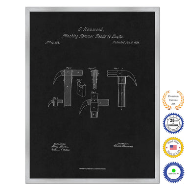 1856 Attaching Hammer Heads to Shafts Old Patent Art Print on Canvas Custom Framed Vintage Home Decor Wall Decoration Great for Gifts