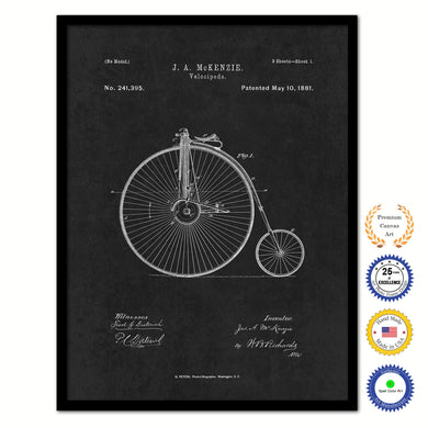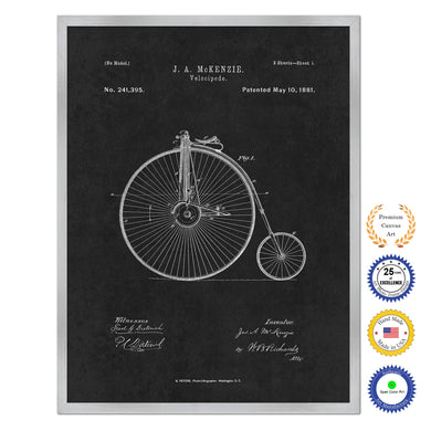 1889 Velocipede Old Patent Art Print on Canvas Custom Framed Vintage Home Decor Wall Decoration Great for Gifts