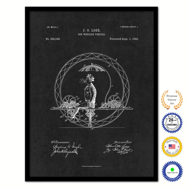 1885 One Wheeled Vehicle Old Patent Art Print on Canvas Custom Framed Vintage Home Decor Wall Decoration Great for Gifts