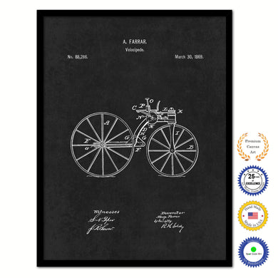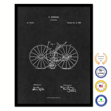 1869 Velocipede Old Patent Art Print on Canvas Custom Framed Vintage Home Decor Wall Decoration Great for Gifts