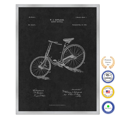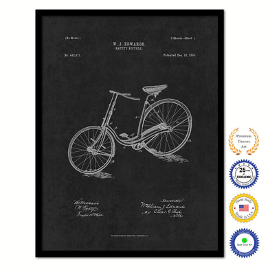 1890 Safety Bicycle Old Patent Art Print on Canvas Custom Framed Vintage Home Decor Wall Decoration Great for Gifts