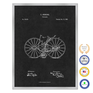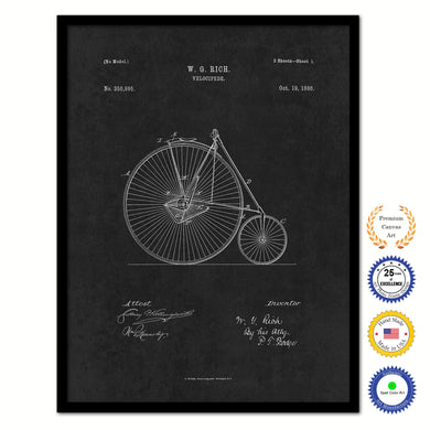 1886 Velocipede Old Patent Art Print on Canvas Custom Framed Vintage Home Decor Wall Decoration Great for Gifts