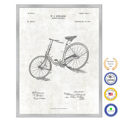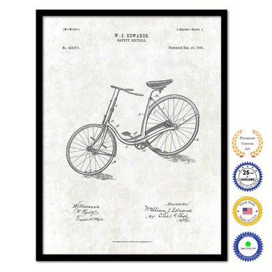 1890 Safety Bicycle Old Patent Art Print on Canvas Custom Framed Vintage Home Decor Wall Decoration Great for Gifts