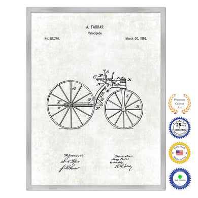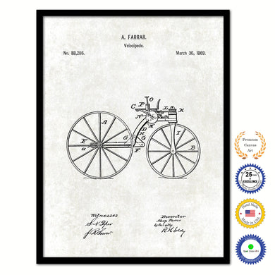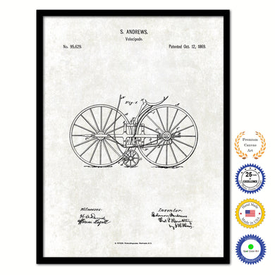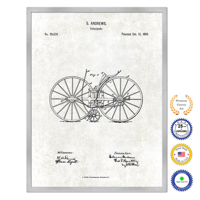 1869 Velocipede Old Patent Art Print on Canvas Custom Framed Vintage Home Decor Wall Decoration Great for Gifts