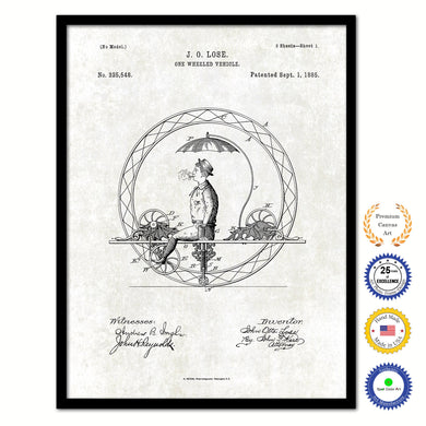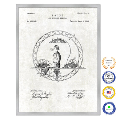1885 One Wheeled Vehicle Old Patent Art Print on Canvas Custom Framed Vintage Home Decor Wall Decoration Great for Gifts
