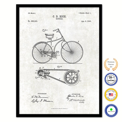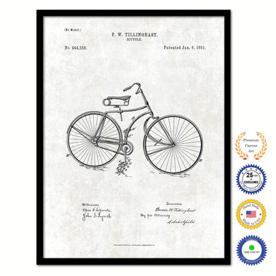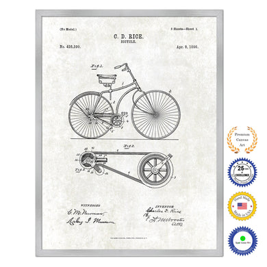 1890 Bicycle Old Patent Art Print on Canvas Custom Framed Vintage Home Decor Wall Decoration Great for Gifts