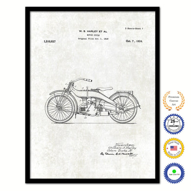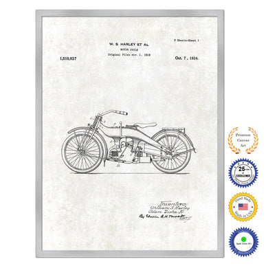 1924 Motor Cycle Old Patent Art Print on Canvas Custom Framed Vintage Home Decor Wall Decoration Great for Gifts