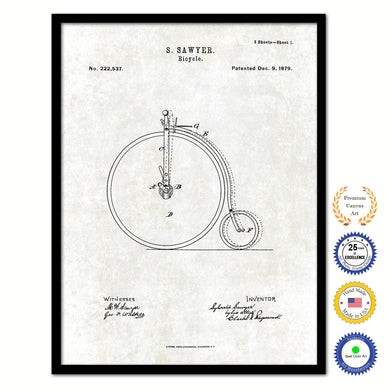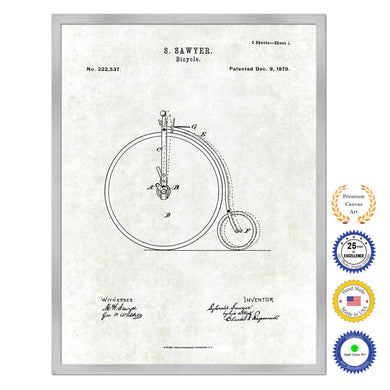 1879 Bicycle Old Patent Art Print on Canvas Custom Framed Vintage Home Decor Wall Decoration Great for Gifts