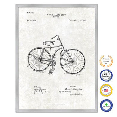 1891 Bicycle Old Patent Art Print on Canvas Custom Framed Vintage Home Decor Wall Decoration Great for Gifts