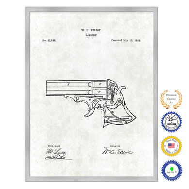 1864 Gun Revolver Old Patent Art Print on Canvas Custom Framed Vintage Home Decor Wall Decoration Great for Gifts