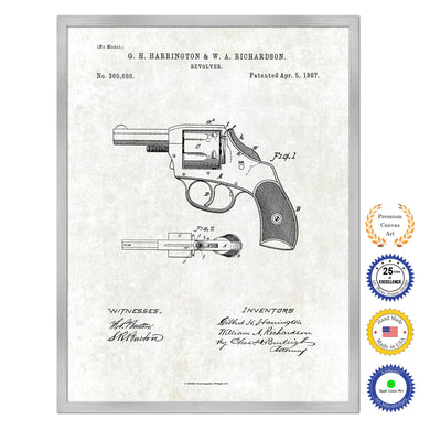 1887 Gun Revolver Old Patent Art Print on Canvas Custom Framed Vintage Home Decor Wall Decoration Great for Gifts