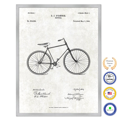 1894 Bicycle Old Patent Art Print on Canvas Custom Framed Vintage Home Decor Wall Decoration Great for Gifts