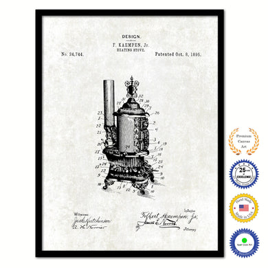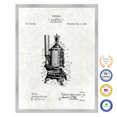 1895 Heating Stove Old Patent Art Print on Canvas Custom Framed Vintage Home Decor Wall Decoration Great for Gifts
