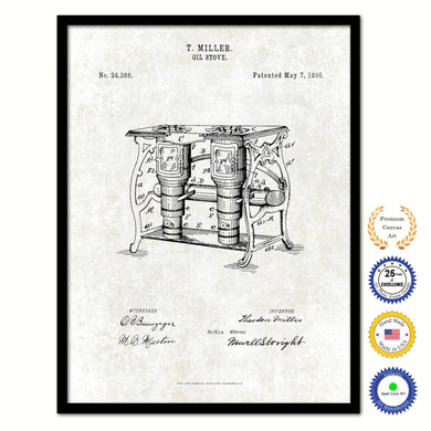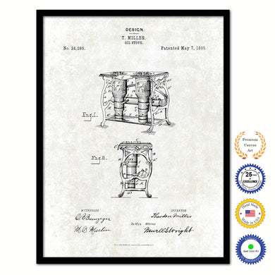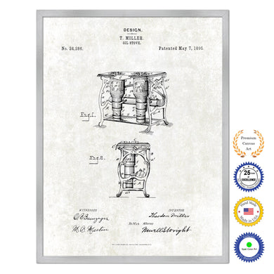 1895 Oil Stove Old Patent Art Print on Canvas Custom Framed Vintage Home Decor Wall Decoration Great for Gifts