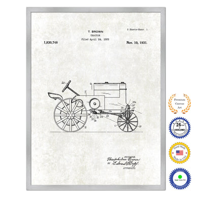 1931 Tractor Old Patent Art Print on Canvas Custom Framed Vintage Home Decor Wall Decoration Great for Gifts