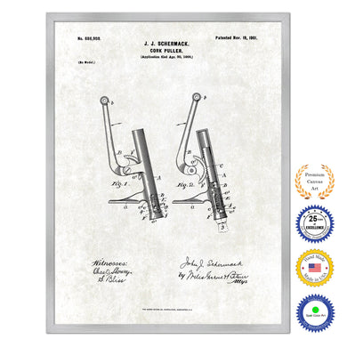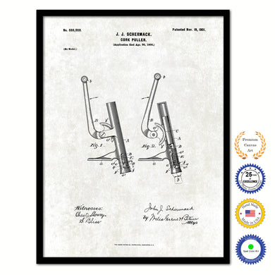 1901 Cork Puller Old Patent Art Print on Canvas Custom Framed Vintage Home Decor Wall Decoration Great for Gifts
