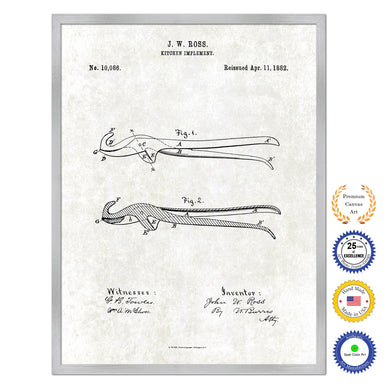 1882 Kitchen Implement Old Patent Art Print on Canvas Custom Framed Vintage Home Decor Wall Decoration Great for Gifts