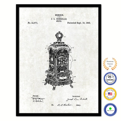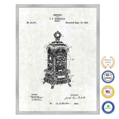 1895 Stove Old Patent Art Print on Canvas Custom Framed Vintage Home Decor Wall Decoration Great for Gifts