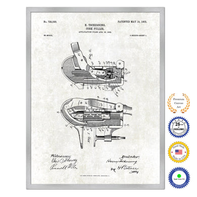 1903 Cork Puller Old Patent Art Print on Canvas Custom Framed Vintage Home Decor Wall Decoration Great for Gifts