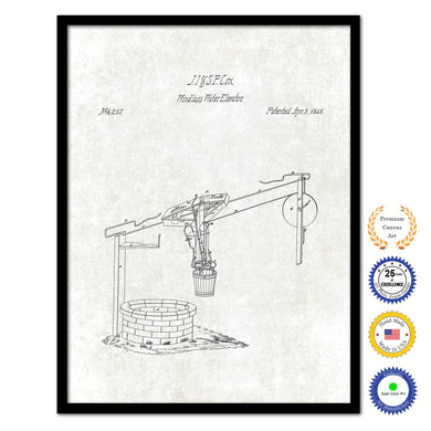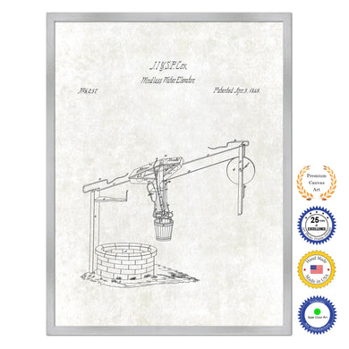 1849 Windlass Water Elevator Old Patent Art Print on Canvas Custom Framed Vintage Home Decor Wall Decoration Great for Gifts