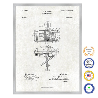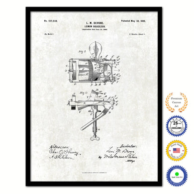 1899 Lemon Squeezer Old Patent Art Print on Canvas Custom Framed Vintage Home Decor Wall Decoration Great for Gifts