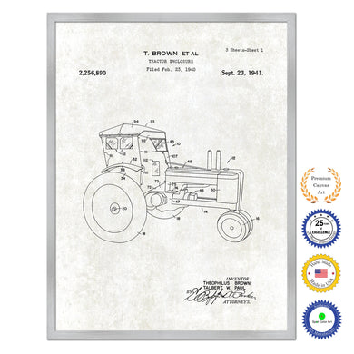 1941 Tractor Enclosure Old Patent Art Print on Canvas Custom Framed Vintage Home Decor Wall Decoration Great for Gifts