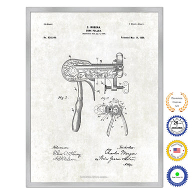 1899 Cork Puller Old Patent Art Print on Canvas Custom Framed Vintage Home Decor Wall Decoration Great for Gifts
