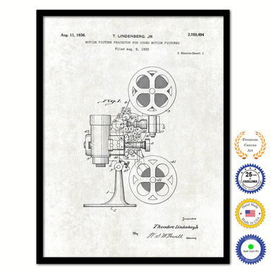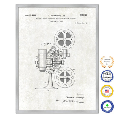 1936 Lindenberg Motion Picture Projector Old Patent Art Print on Canvas Custom Framed Vintage Home Decor Wall Decoration Great for Gifts