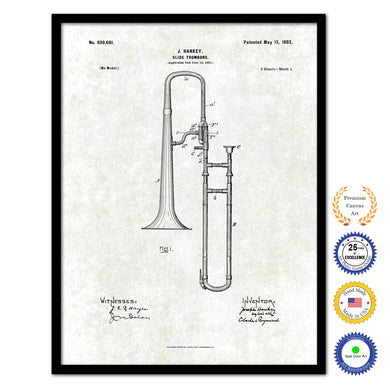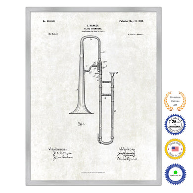 1902 Slide Trombone Old Patent Art Print on Canvas Custom Framed Vintage Home Decor Wall Decoration Great for Gifts