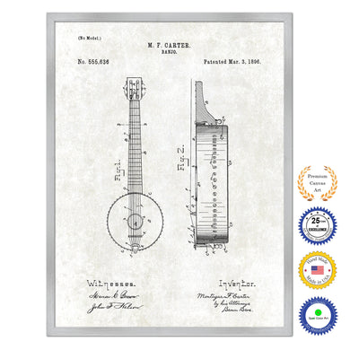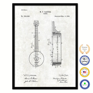 1896 Banjo Old Patent Art Print on Canvas Custom Framed Vintage Home Decor Wall Decoration Great for Gifts