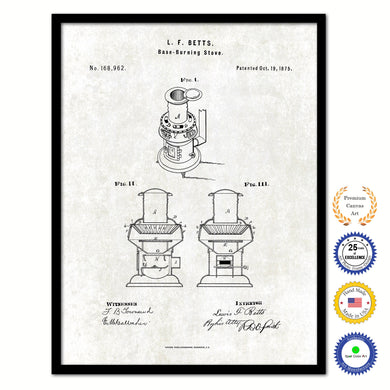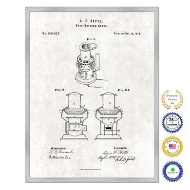 1901 Base Burning Stove Old Patent Art Print on Canvas Custom Framed Vintage Home Decor Wall Decoration Great for Gifts