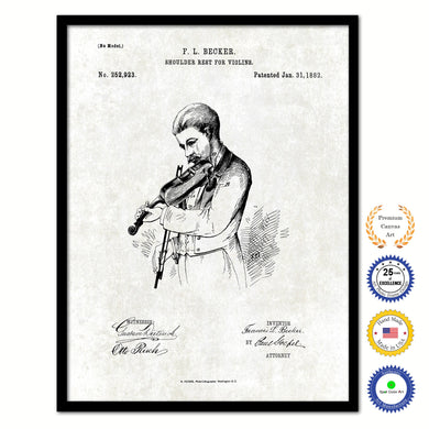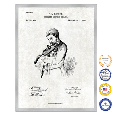 1882 Shoulder Rest for Violins Old Patent Art Print on Canvas Custom Framed Vintage Home Decor Wall Decoration Great for Gifts