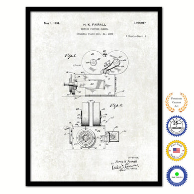 1934 Fairall Motion Picture Camera Old Patent Art Print on Canvas Custom Framed Vintage Home Decor Wall Decoration Great for Gifts