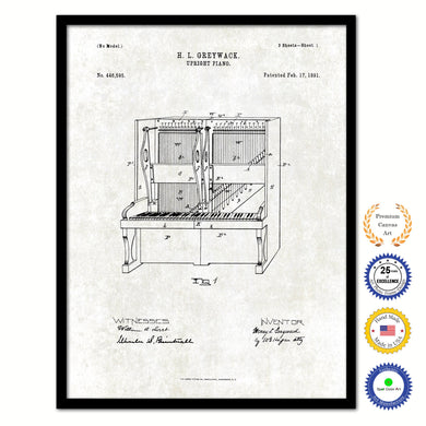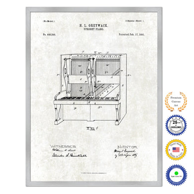 1891 Upright Piano Old Patent Art Print on Canvas Custom Framed Vintage Home Decor Wall Decoration Great for Gifts