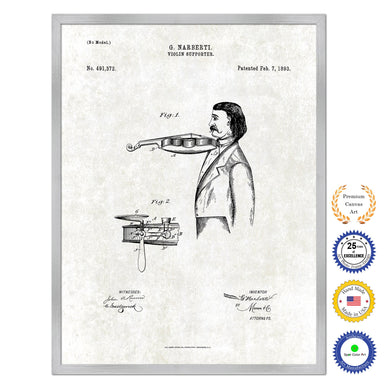 1893 Violin Supporter Old Patent Art Print on Canvas Custom Framed Vintage Home Decor Wall Decoration Great for Gifts