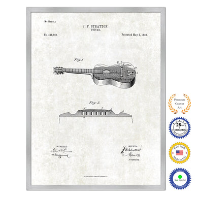1893 Acoustic Guitar Old Patent Art Print on Canvas Custom Framed Vintage Home Decor Wall Decoration Great for Gifts