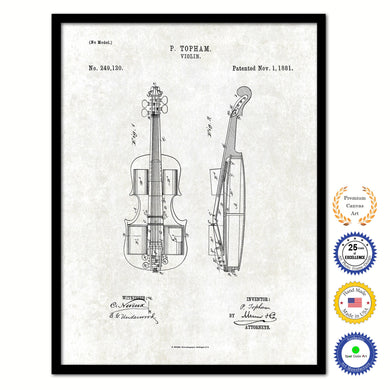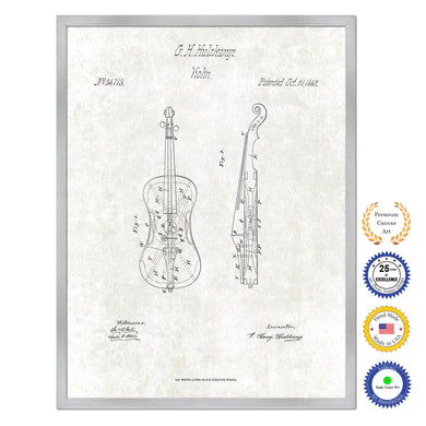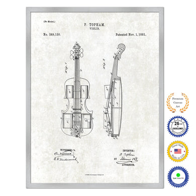 1881 Violin Old Patent Art Print on Canvas Custom Framed Vintage Home Decor Wall Decoration Great for Gifts