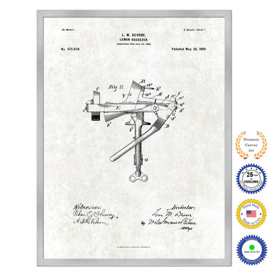 1899 Lemon Squeezer Old Patent Art Print on Canvas Custom Framed Vintage Home Decor Wall Decoration Great for Gifts