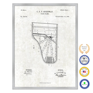 1885 Piano Frame Old Patent Art Print on Canvas Custom Framed Vintage Home Decor Wall Decoration Great for Gifts