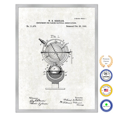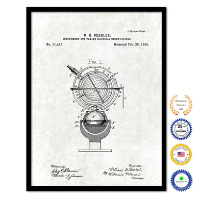 1895 Instrument for taking nautical observations Old Patent Art Print on Canvas Custom Framed Vintage Home Decor Wall Decoration Great for Gifts